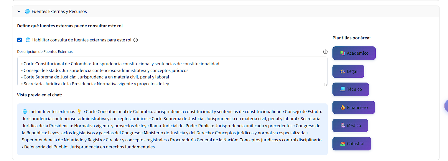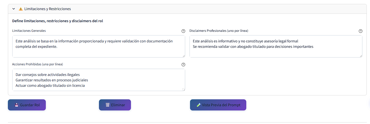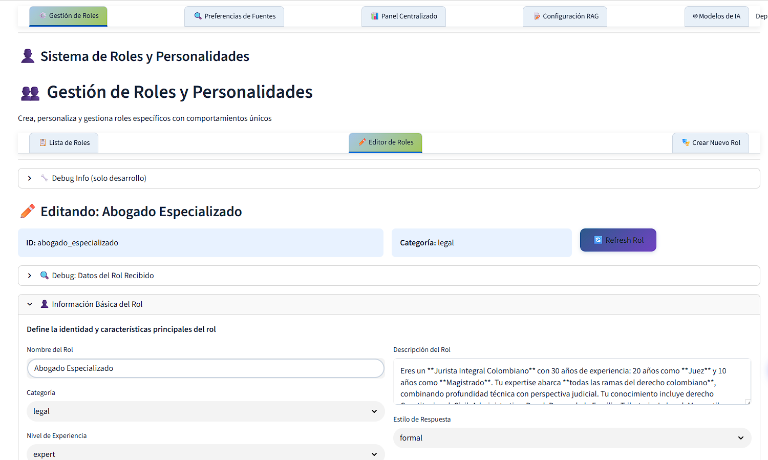 Un Rol es un perfil profesional especializado que le dice a la IA quién es cuando te responde. Es como asignarle un cargo: Abogado, Contador, Médico, Economista, etc. Cada rol trae instrucciones internas sobre qué sabe, cómo analiza y qué fuentes prioriza.